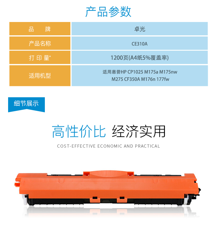 當(dāng)前位置: 首頁 > 辦公耗材 > 鼓粉盒 > 卓光 CE310A 黑色硒鼓墨粉盒(適用惠普m176n硒鼓mfp m177fw cp1025nw m176n 佳能lbp7010c7018c crg329打印機(jī)粉盒墨盒)