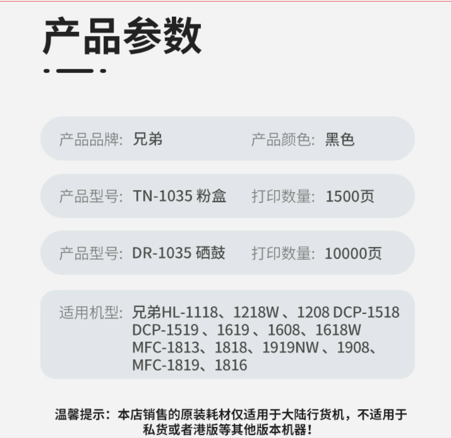 兄弟原裝TN-1035粉盒DR硒鼓1919nw1218w1208DCP-1618w1608 1908 DR-1035硒鼓