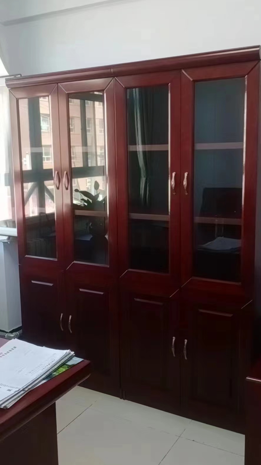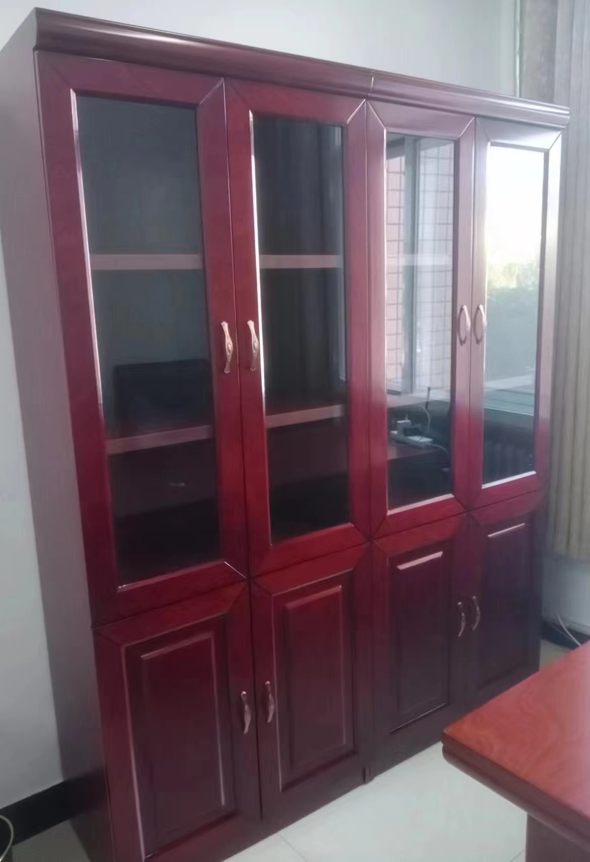當(dāng)前位置: 首頁 > 柜類 > 木質(zhì)柜類 > 四門書柜 文件柜油漆實(shí)木貼皮資料柜書柜書櫥紅胡桃色