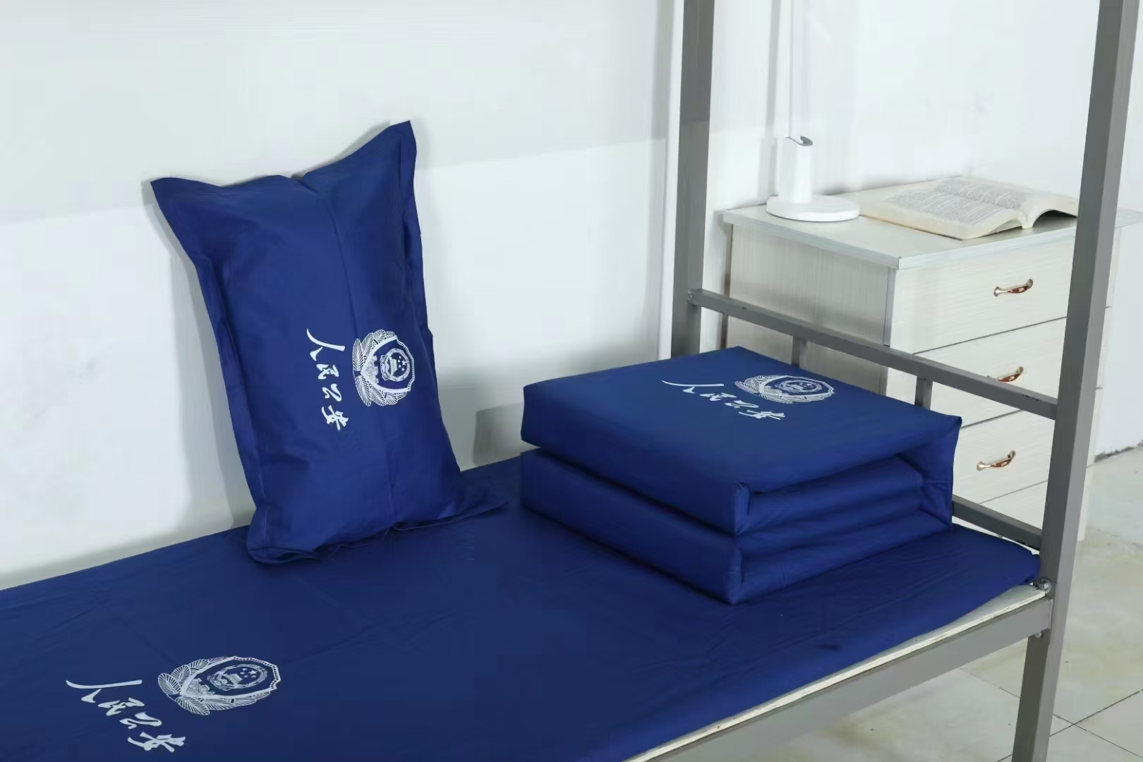 當(dāng)前位置: 首頁(yè) > 商業(yè)軟件 > 辦公套件 > 藍(lán)色純棉六件套公安定制印字logo床單被套被子褥子枕頭宿舍單位床上用品 純棉斜紋 無(wú)LOGO 上下鋪用0.9m-1.0m床六件套