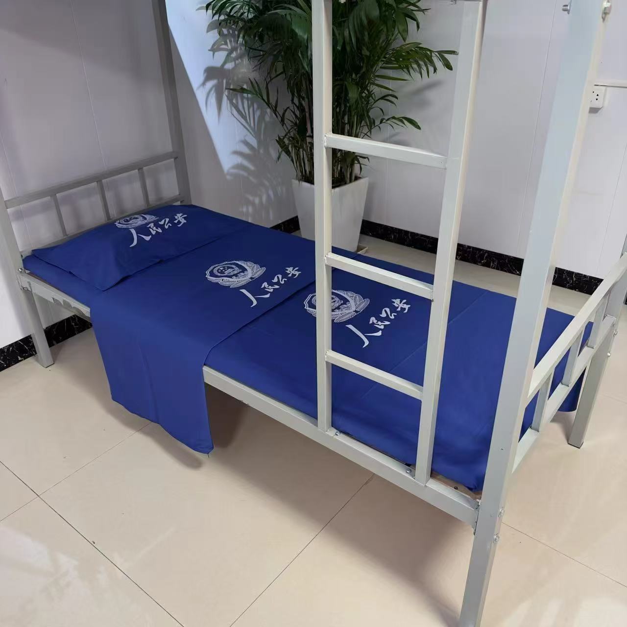 藍(lán)色純棉六件套公安定制印字logo床單被套被子褥子枕頭宿舍單位床上用品 純棉斜紋 無(wú)LOGO 上下鋪用0.9m-1.0m床六件套